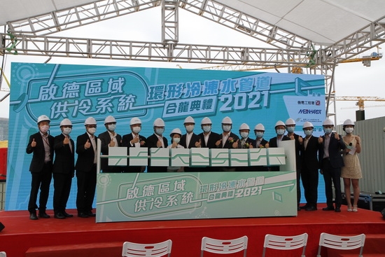 香港特区政府机电工程署于2021年4月19日在2849EM17A项目部举行“启德区域供冷系统环形冷冻水管道合龙典礼”,庆祝机电工程署在启德新区冷冻水管道工程完工合龙。香港环境局局长黄锦星、机电工程署署长彭耀雄、香港立法会工程界议员卢伟国、香港工程师学会会长源柏梁、工程顾问-迈进基建环保工程顾问有限公司董事总经理龚永泉、中国地质香港公司董事总经理董继柏及参与该系统工程建设的有关代表出席典礼并担任主礼嘉宾,一同主持合龙仪式。