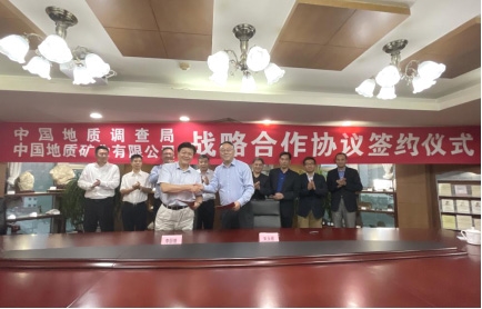 6月16日,自然资源部中国地质调查局与中国地矿在京签署战略合作协议。全国政协常委、中国地调局副局长李朋德,副总工程师、科技外事部主任朱立新;中国地矿党委书记、董事长宋永祺,党委副书记、总经理杜少彬出席签约仪式并见签。