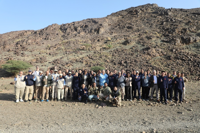1月4日,由中国地质所属中国地矿与沙特地质调查局、中国地质调查局合作实施的沙特阿拉伯地球化学勘查项目重砂野外采样竣工典礼在麦地那举行。沙特阿拉伯地质调查局局长阿卜杜拉·沙姆拉尼(Eng. Abdullah Shamrani)、区调项目负责人瓦迪·卡什加里博士(Dr. Wadee Kashighari)、地球化学勘查项目经理法瓦兹博士(Dr. Fawaz)等沙特地调局领导、项目管理人员及中外技术合作伙伴出席活动。